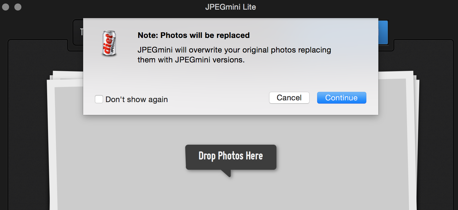 とメッセージが出ますが、「Use JPEGmini LIte」をクリック!