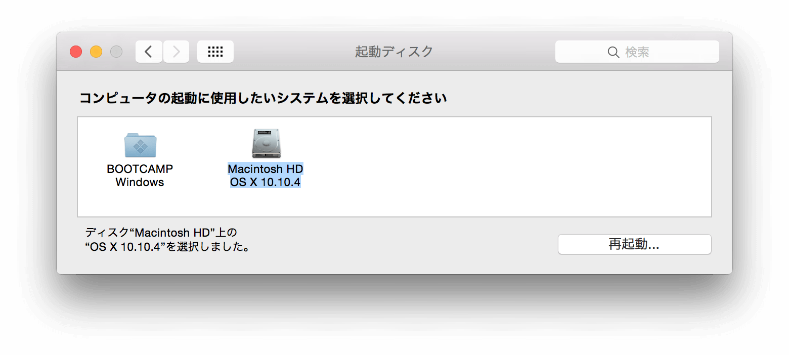 - ダブルクリックするか [return] キーを押して、選択したボリュームから Mac を起動します。
