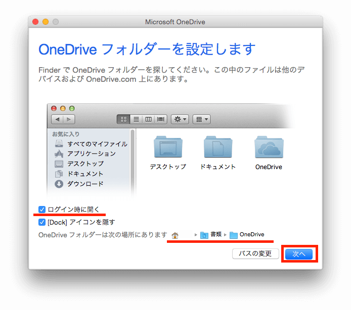 テストのため、「ログイン時に開く」チェックボックスはオンに変更しました。