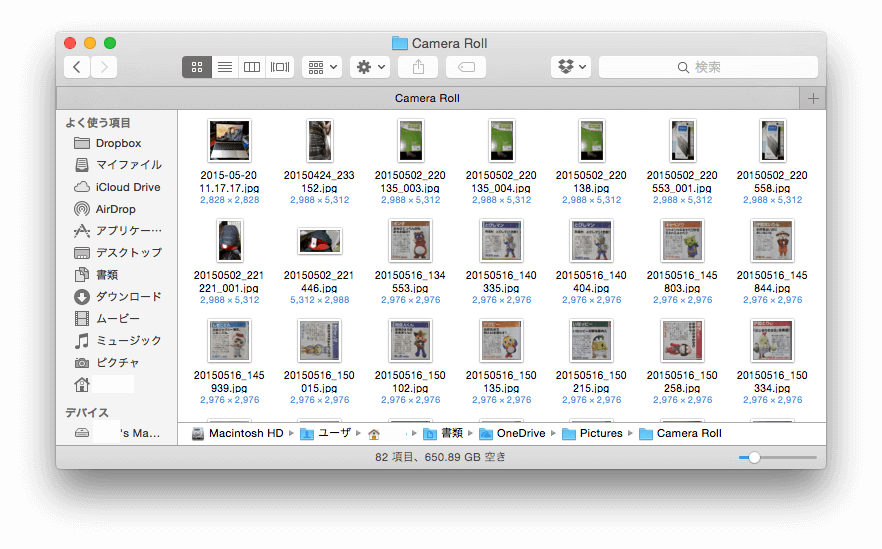 Camera Roll 内には、モニターでお借りしていた Galaxy S6 edge で撮影した画像が入っている。