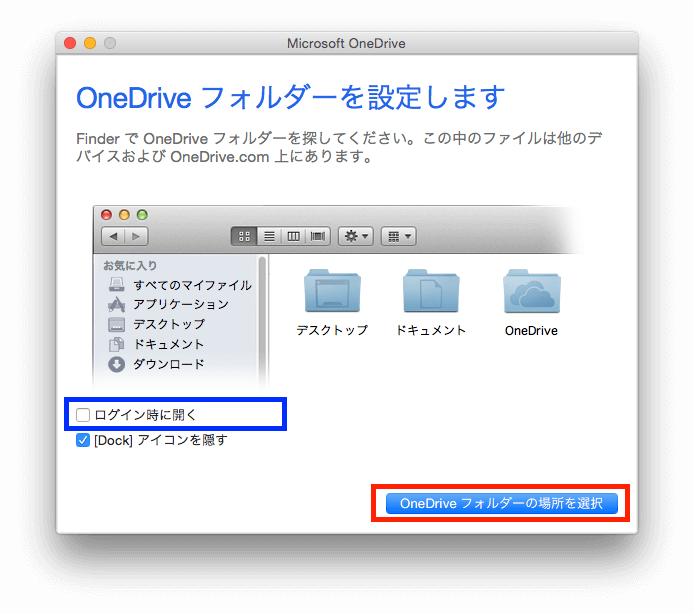 同期中は、メニューバー 赤枠の OneDrive アイコンが点滅します。