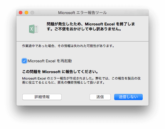 Windows 版の作法でVBA記述して何か問題があるのかもしれないが、異常終了はダメだよね。