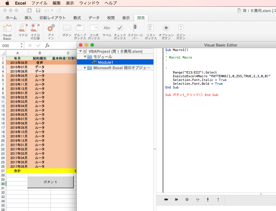 Excel ファイルを開いた後、 Windows と同じ [Alt] + [F11] ( [option] + [F11] ) にて VBE のウィンドウが開く。