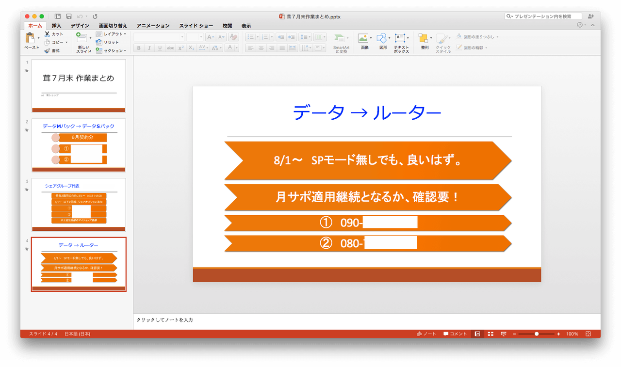 「テキストエディット」で「パワポ」に貼り付ける全テキストを先に考えておいたので、 「パワポ」の作業は5分ほどで済みました。