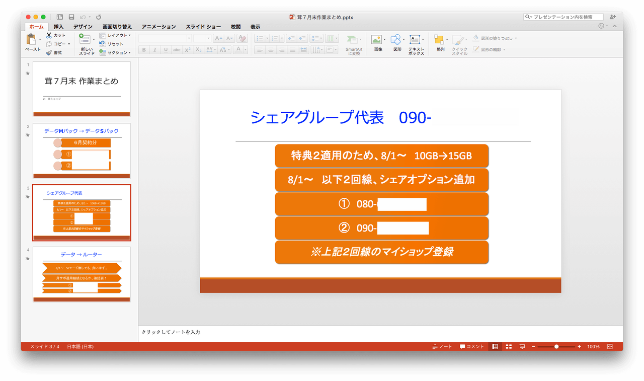 入力するテキストを予めメモしておけば、簡単にプレゼン資料が作成できます。