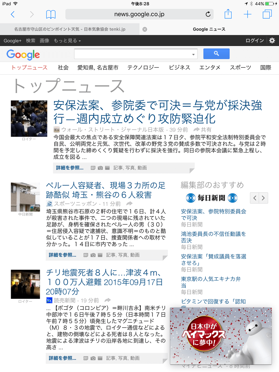 右下の小さなベイマックス動画画面が、「 ピクチャ・イン・ピクチャ 」機能です!