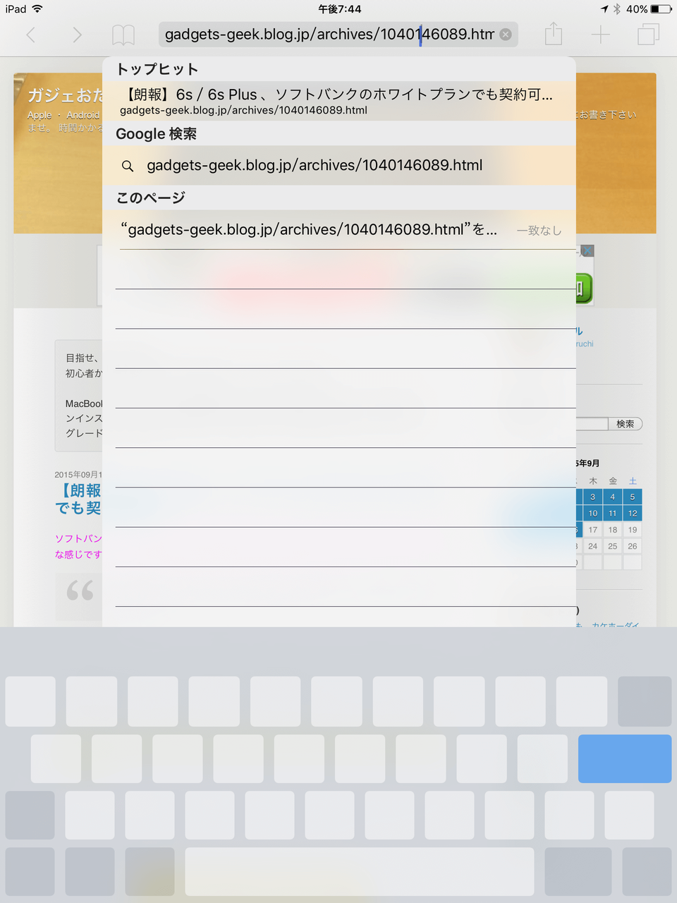 iPad で iOS9 のイチオシ機能が、キーボード操作の強化( QuickType )です。