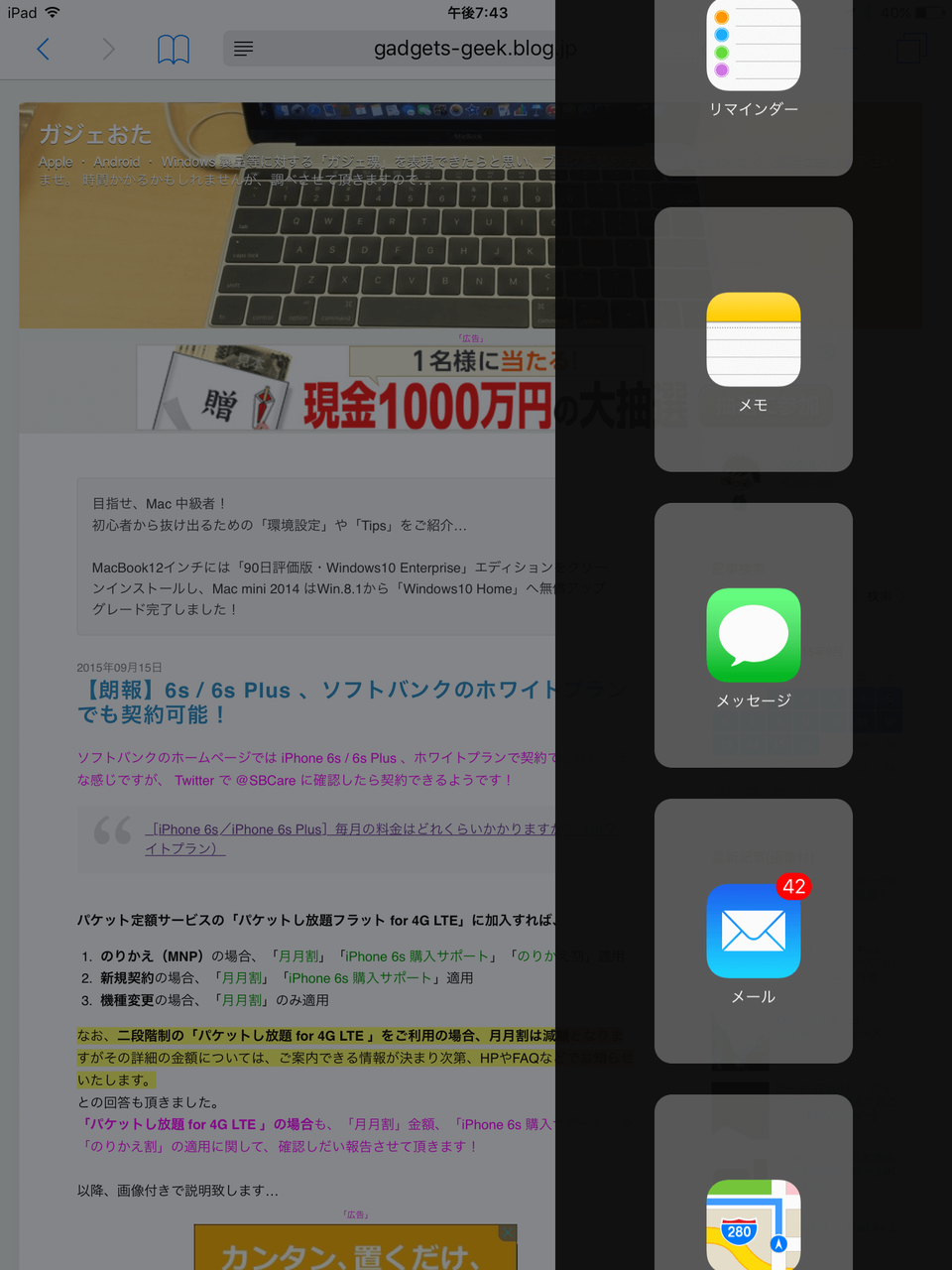 以下に、 擬似マルチタスク機能の Slide Over を説明いたします。