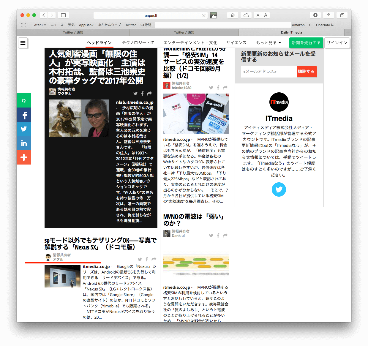 なお、ITmediaさんではありませんが、 Paper.li のIT関連記事として数回掲載されたことがあります。