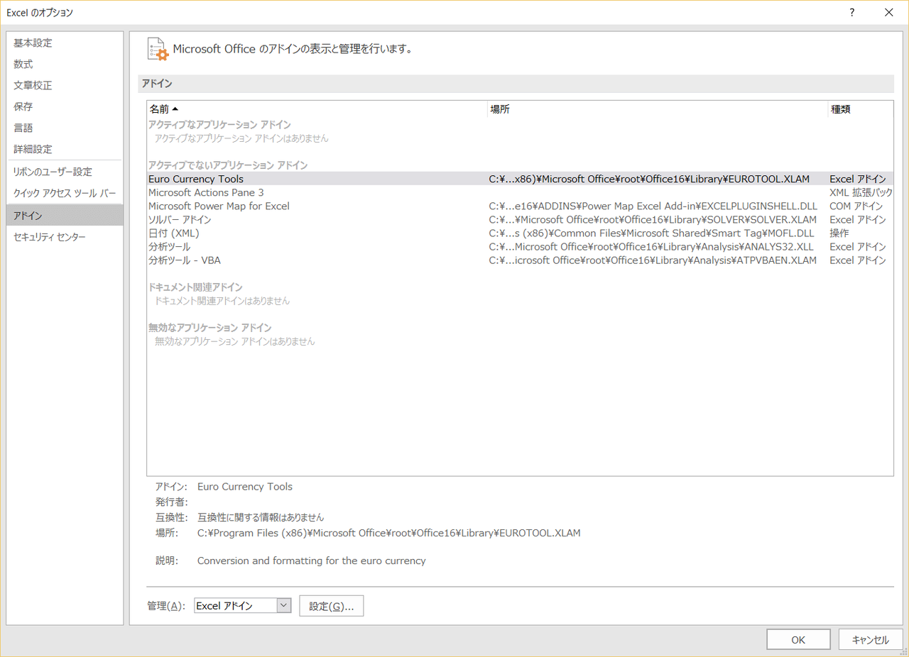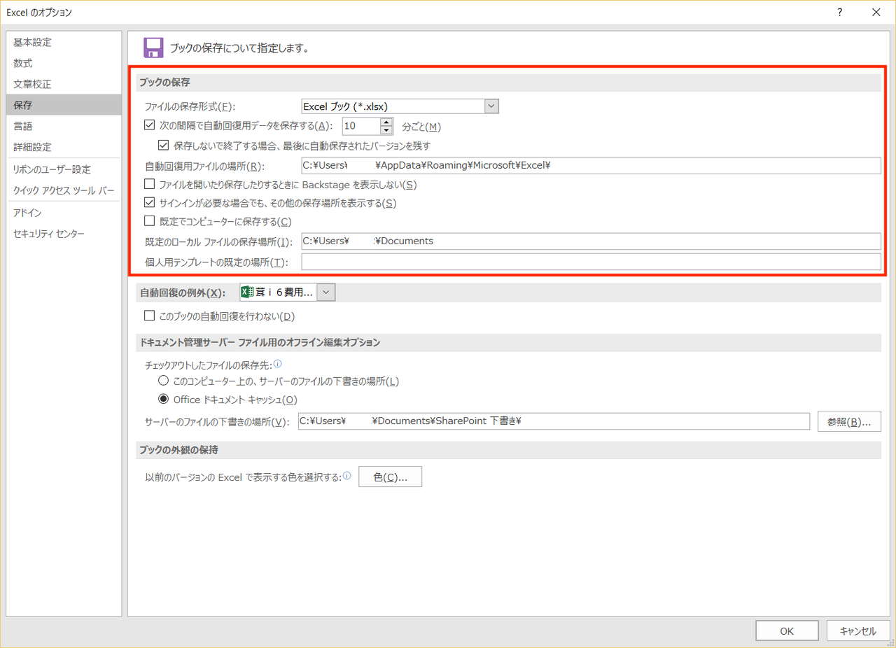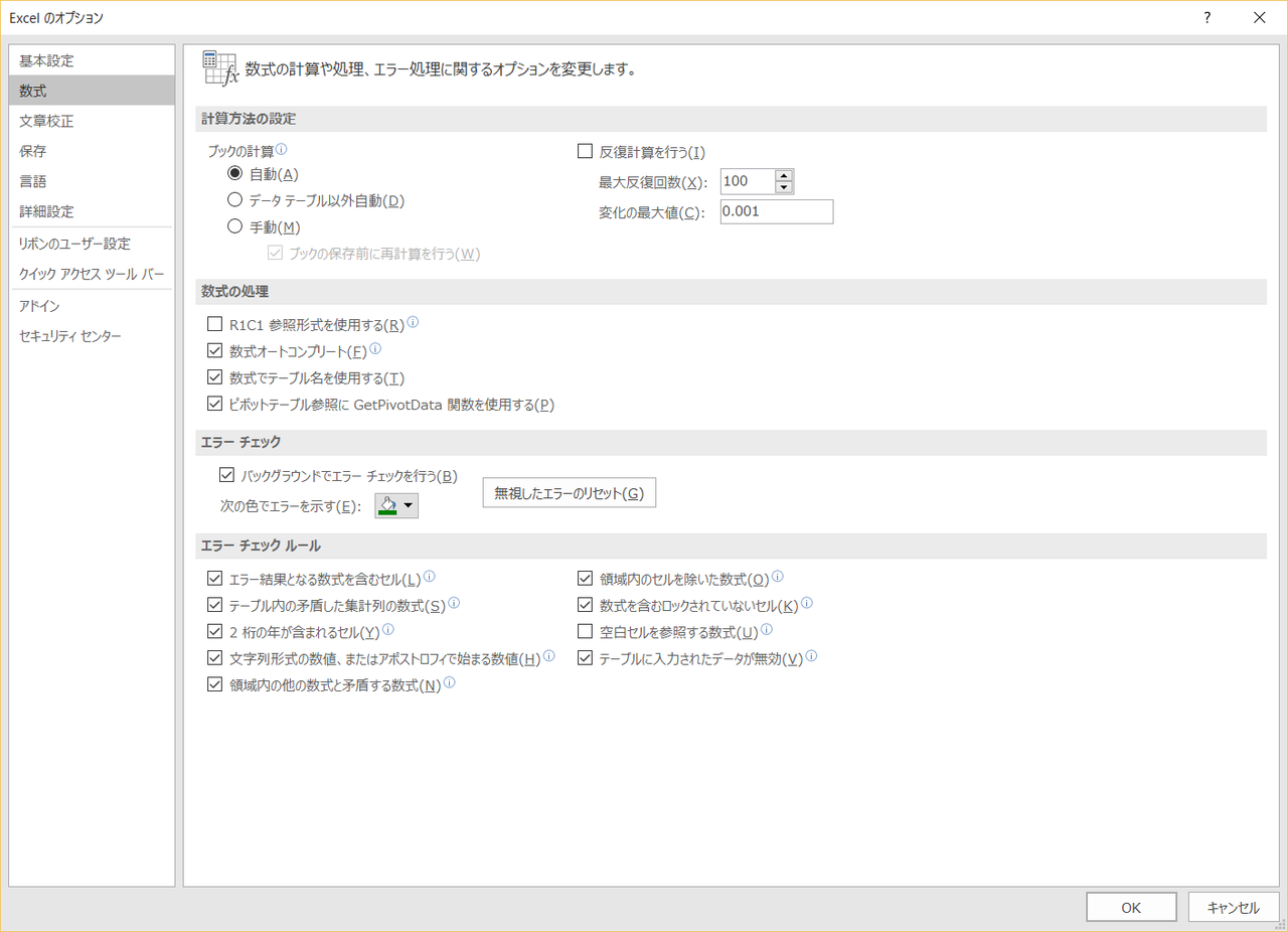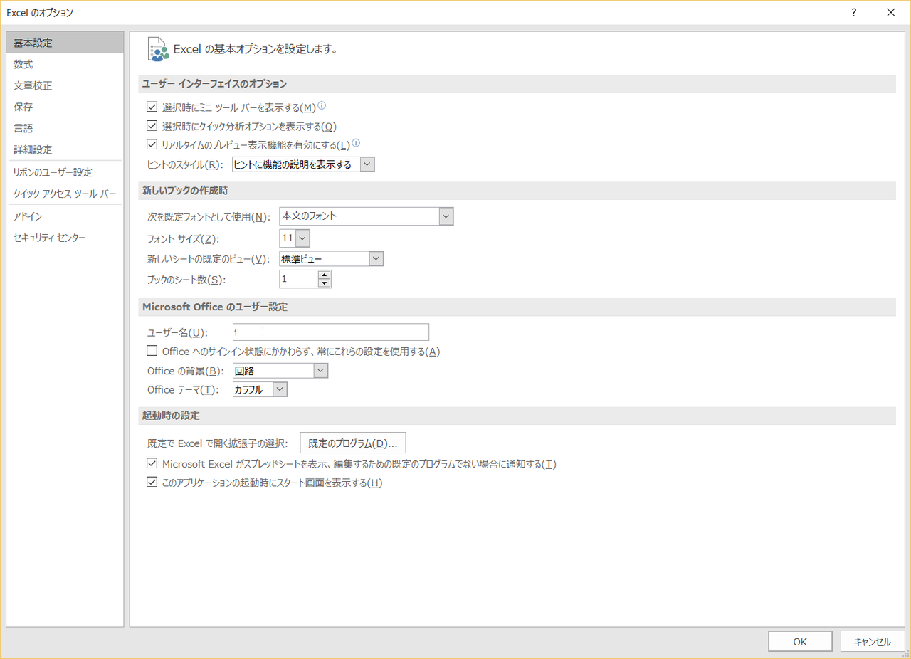Excel 2016 (for Windows) オプション設定