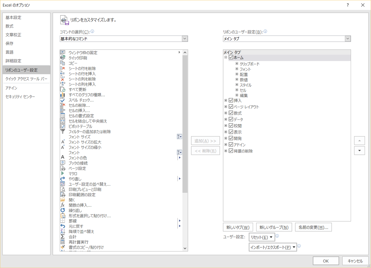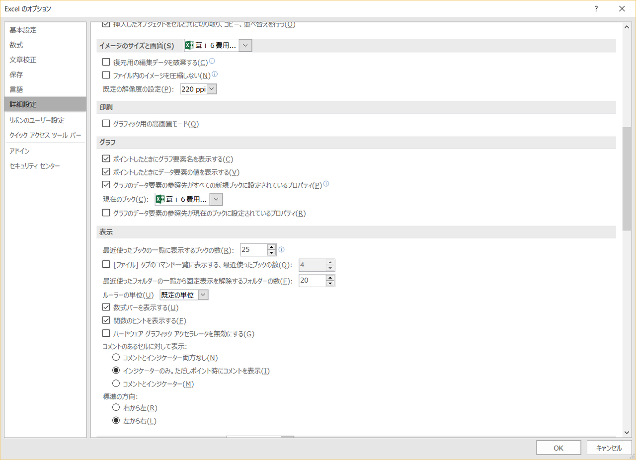 今回は、Excel2016 for Windows のオプション設定画面を全掲載