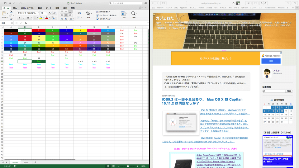 以上、 OS X El Capitan 10.11.2 アップデート直前の 10.11.1 にて 、 Office2016 の Split View 対応を簡単に検証してみました。