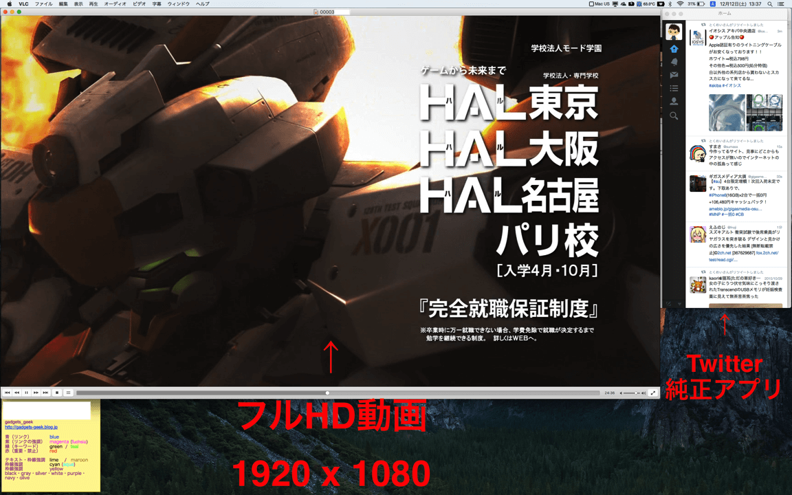 (2) 今まで「フルHD動画鑑賞」時のみ ドットバイドット表示していたが、普通に使ってみた( El Capitan 10.11.2 )