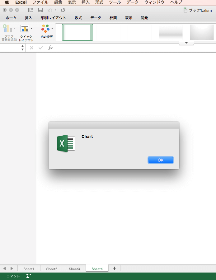 今回挿入した Sheet4 と Chart1 モジュールには VBAコードを一切記述していないので、Sheet1 〜 3 のシート移動で試して頂きたい。