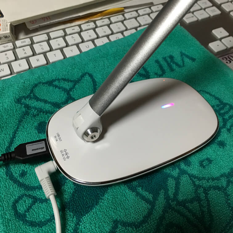 もともと、PCデスク用の机上ライトとして使うつもりだったが、 暗闇でもセンサースイッチがほのかに光る のでスイッチを探す手間がなく「寝室用の(読書)ライト」としてもオススメだ。