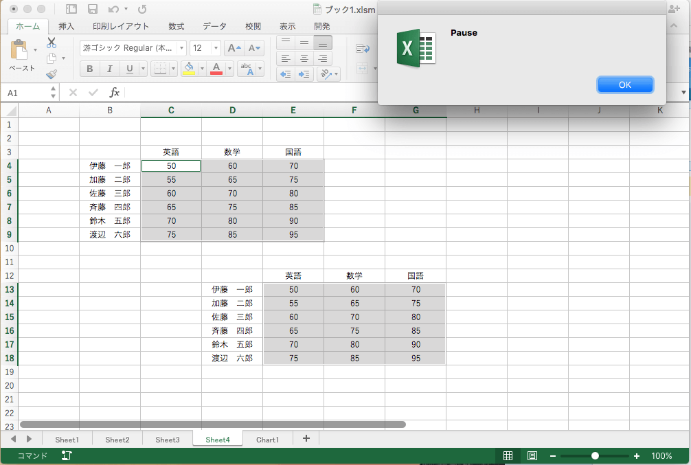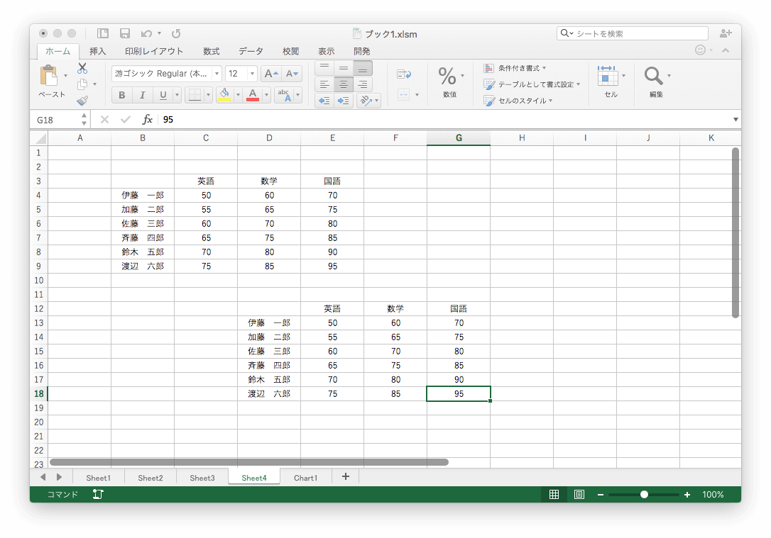 今回も、「Sheet4」を用います。(VBAコードは、 Module1 の末尾に追加)